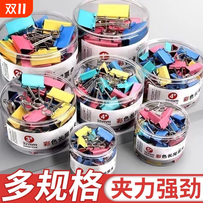 彩色长尾夹燕尾夹夹子大中号小夹子办公用品铁夹子办公室专用文件夹票