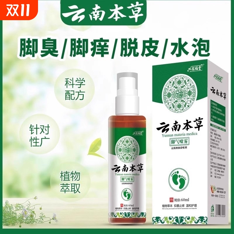 云南本草足部喷雾止痒脱皮去杀菌脚臭膏出汗烂脚丫脚汽气感染喷剂