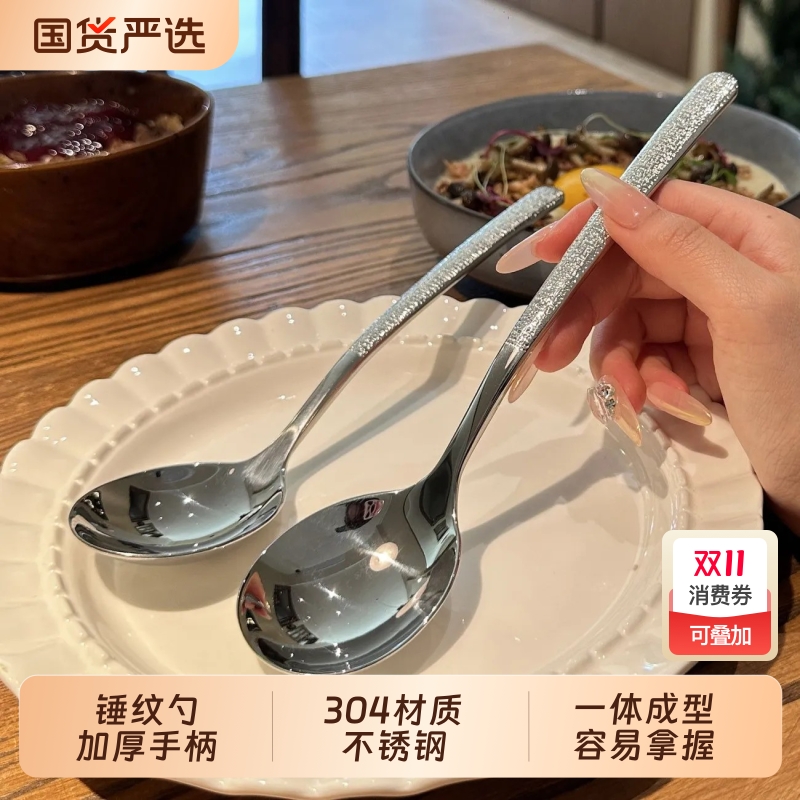 大号超厚304锤纹勺吃饭家用轻奢精致不锈钢勺 分菜大公勺汤勺调羹