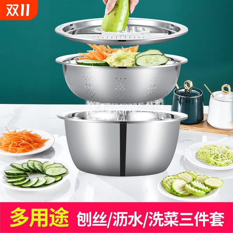 多功能刨丝切片不锈钢切菜洗菜神器三件套加厚食品级304蔬菜细丝