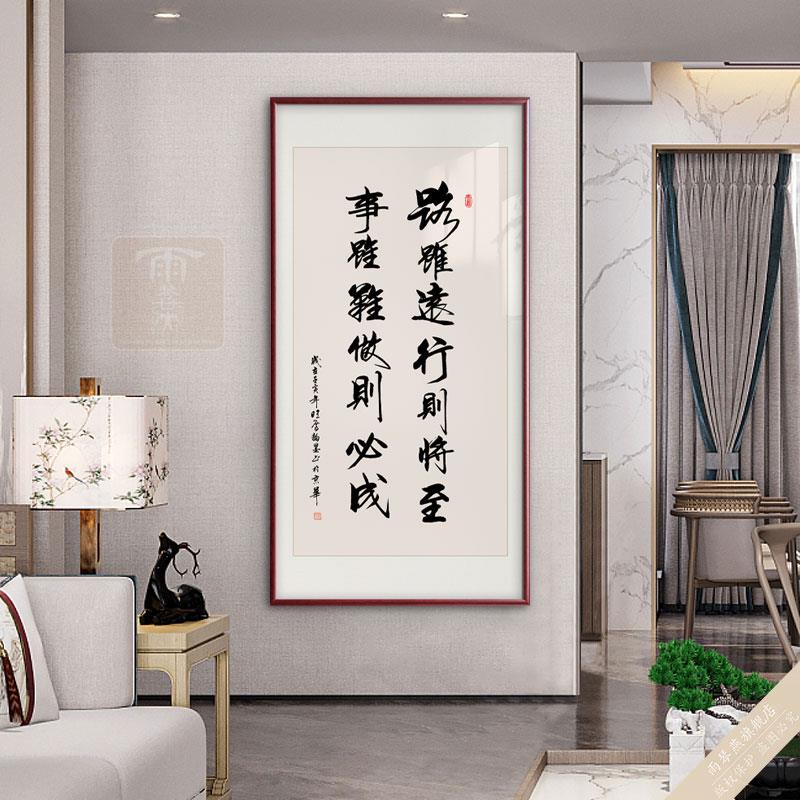 OF9D路虽远行则将至竖款书法挂画办公室客厅会议室挂字画玄关装饰