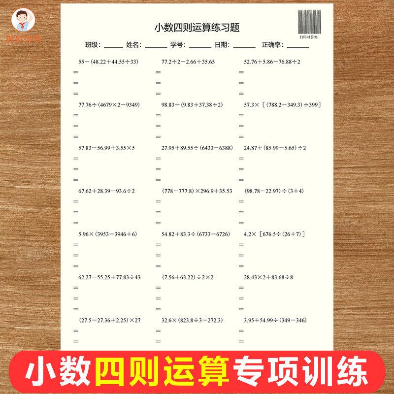 小数四则运算专项训练本四五年级口算竖式脱式计算同步练习题页