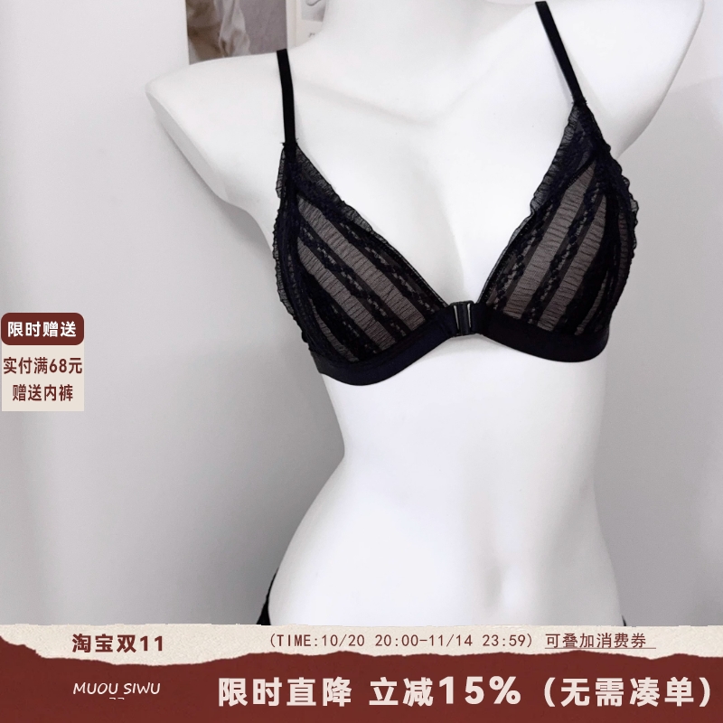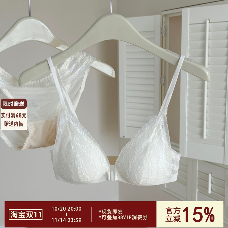 纯欲蕾丝前扣内衣女薄款三角杯无钢圈小胸聚拢透气舒适文胸罩套装