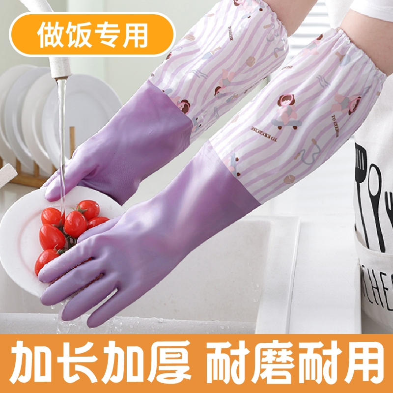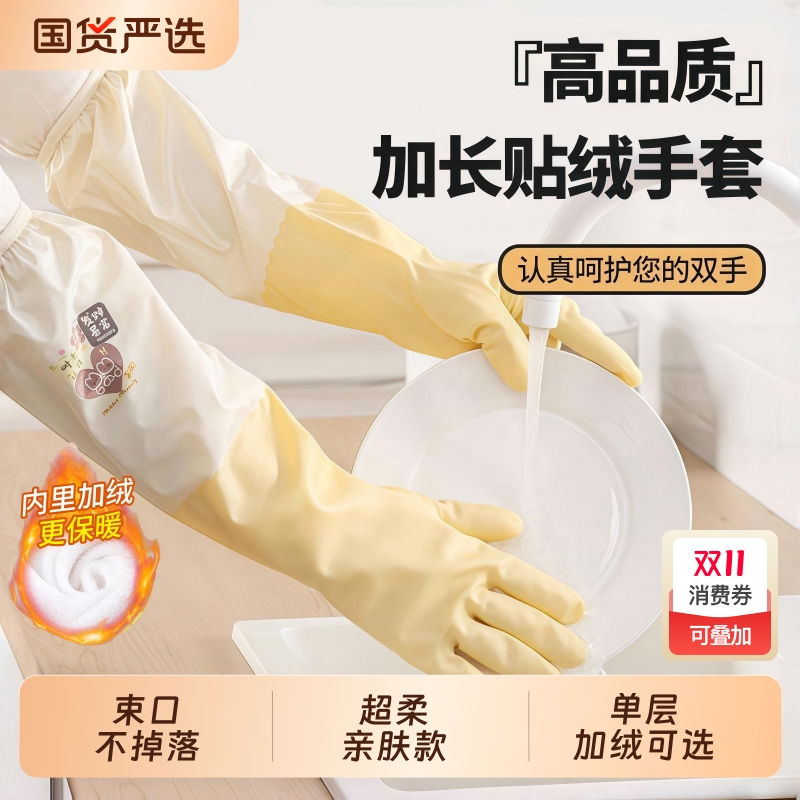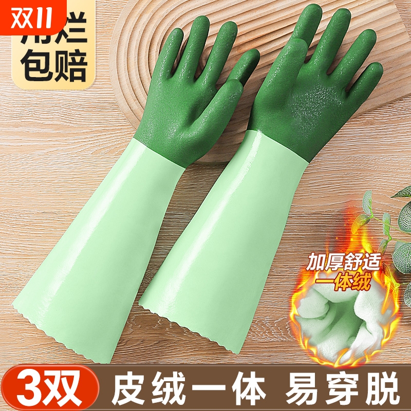 洗碗手套加绒女士厨房专用防水清洁家务冬天用耐用加长加厚一体绒