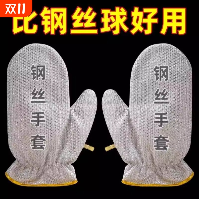 钢丝洗碗长款手套银丝刷碗布防水神器沾油家务厨房加厚清洁加长