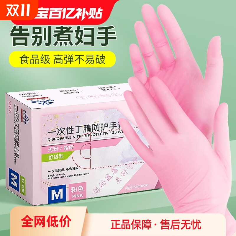 一次性洗碗手套女生家务清洁厨房耐用食品级加长加厚丁腈家用防水