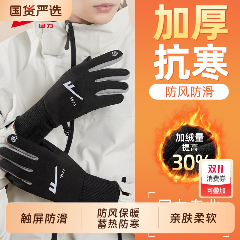 回力骑行手套男士保暖冬季女加绒加厚防寒防风开车可触屏防滑骑车