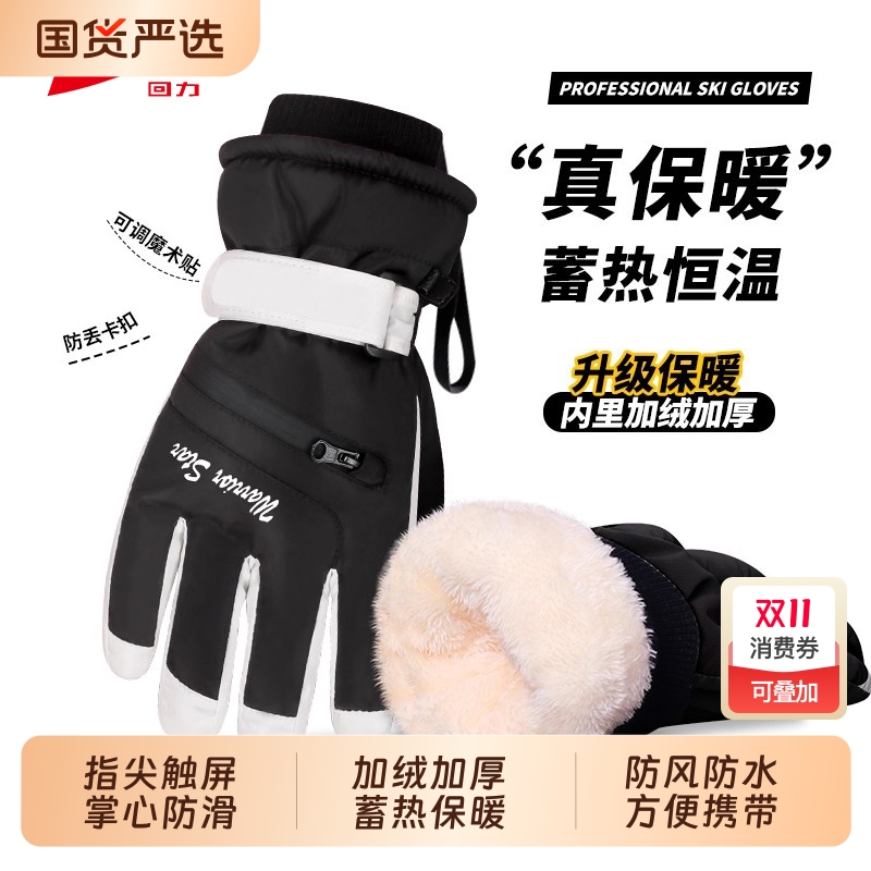 回力滑雪手套男士可触屏冬季加绒加厚保暖防风玩雪防水女骑行手套