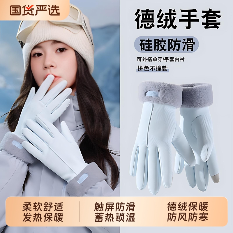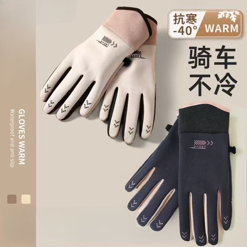 2025新款可爱手套女冬季加绒加厚保暖骑电动车防风防雨水防寒触屏