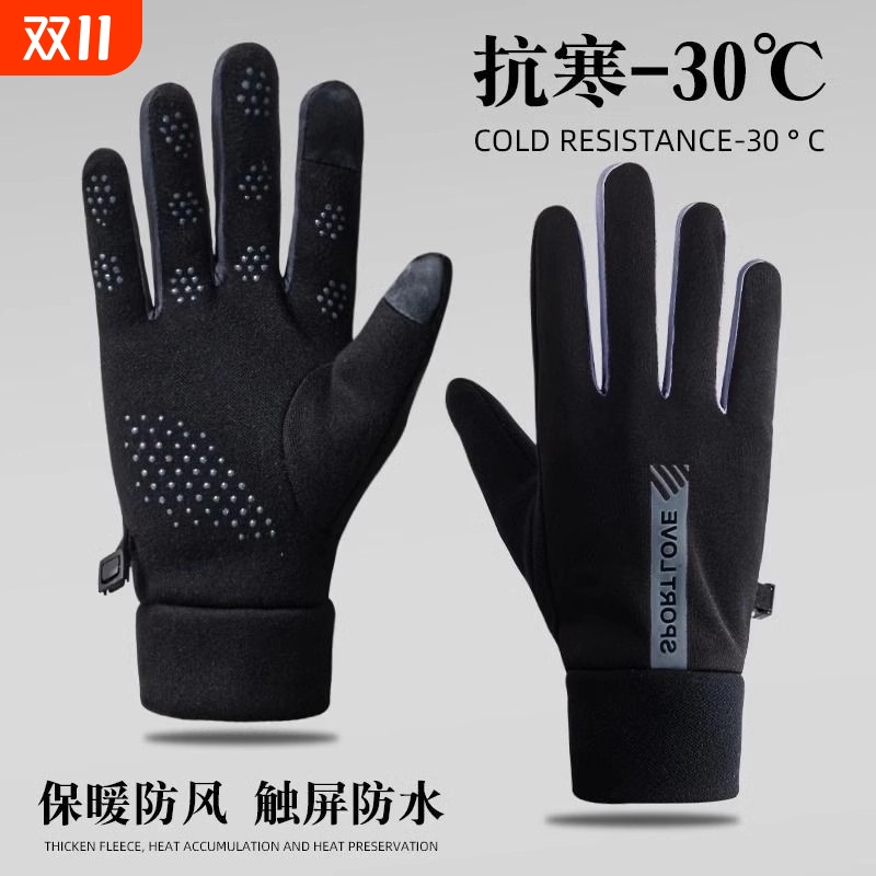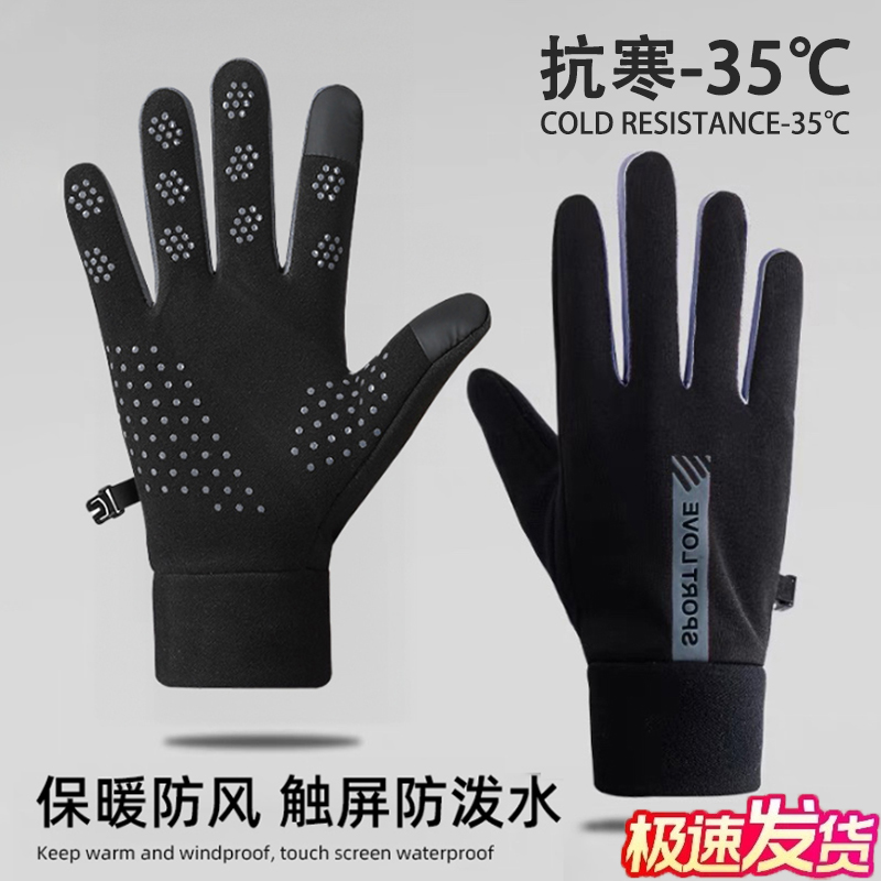 运动防水手套男女引体防寒加绒保暖触屏户外跑步冬季防滑骑车防风