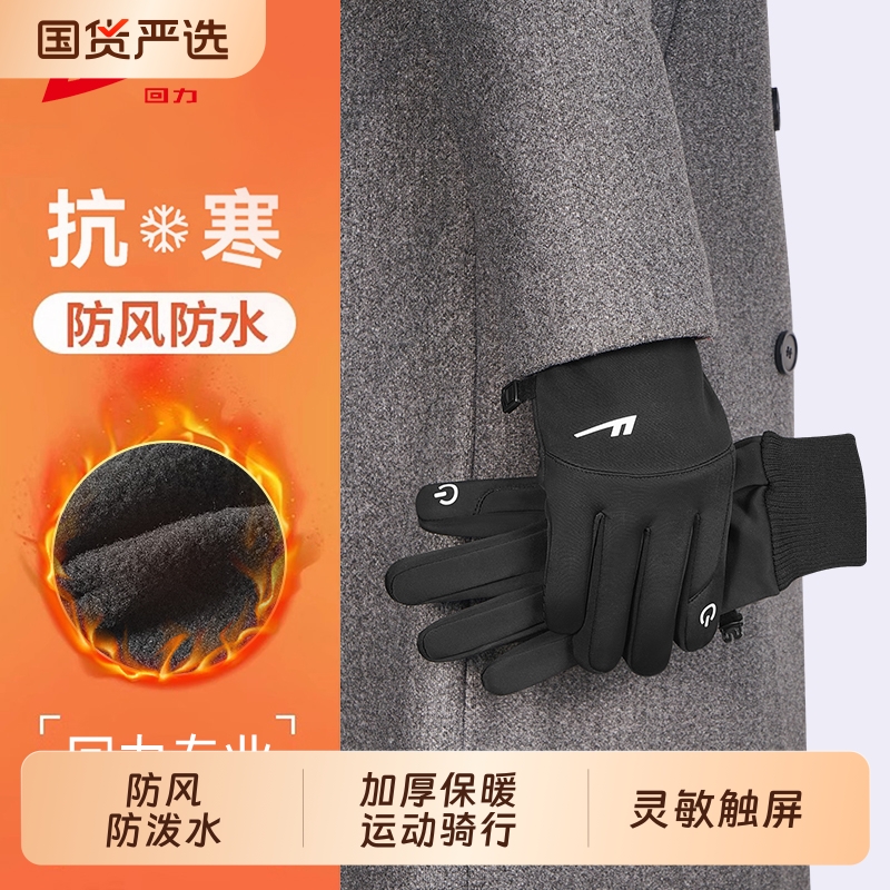 回力骑行保暖手套男士冬季防寒加绒加厚女户外骑车防风可触屏防水