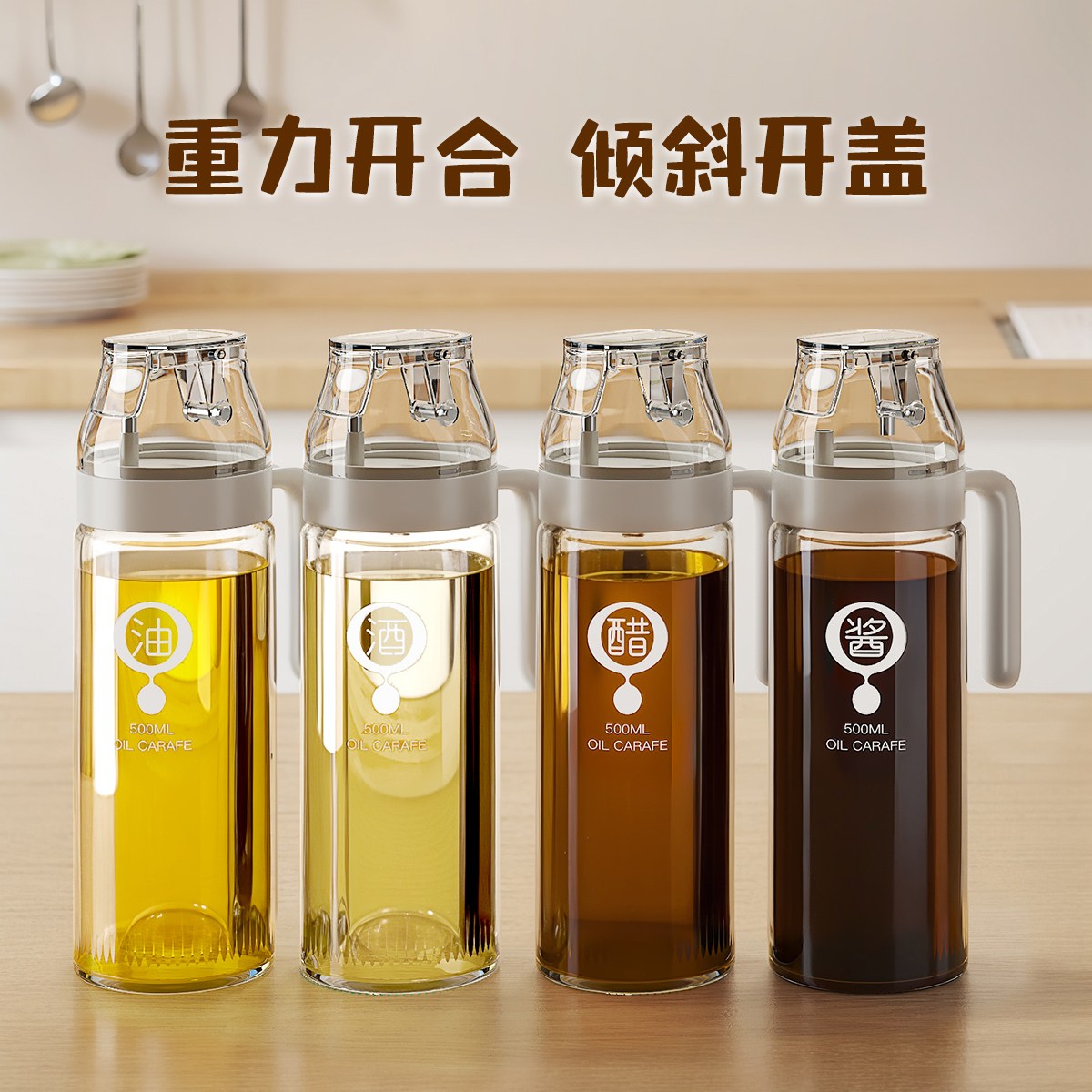 油壶油瓶厨房家用玻璃自动开合调料不挂油酱油醋食品级调味避光