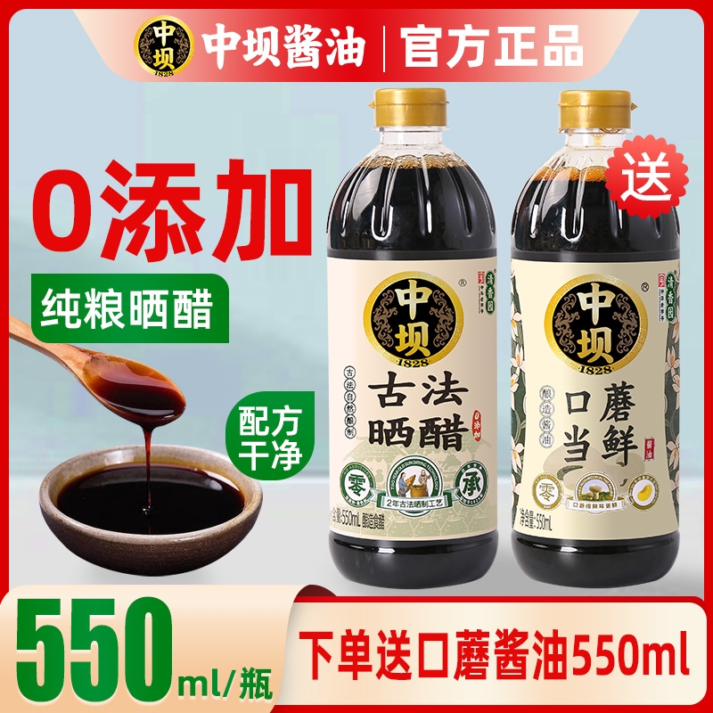 【中坝】古法晒醋0添加酿造食醋550ml*2瓶家用炒菜老字号香醋