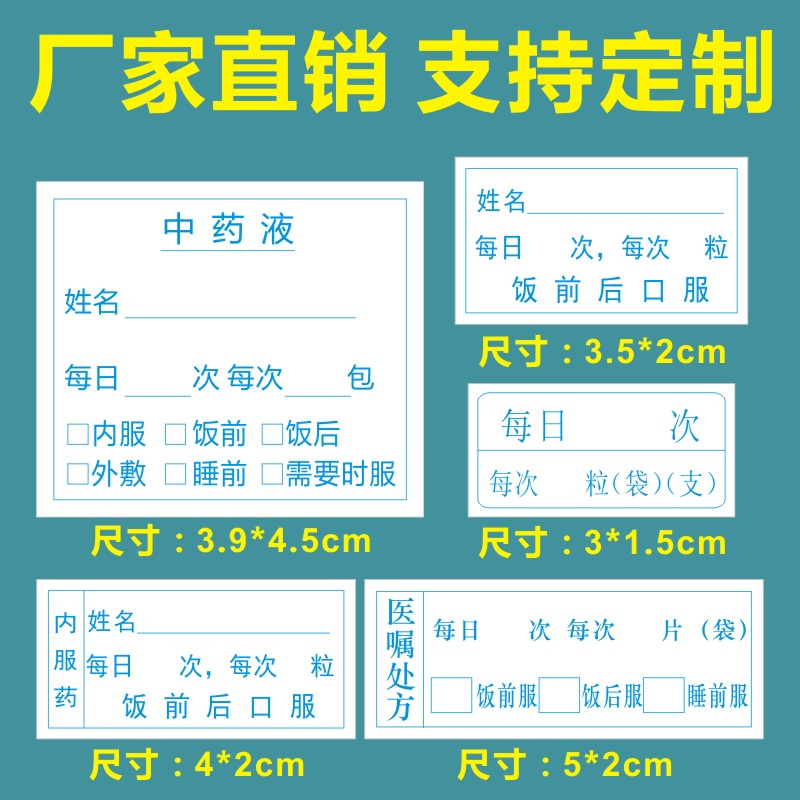 医嘱不干胶贴纸医院窗口口服药标签贴纸处方内服药用法用量每日服用方