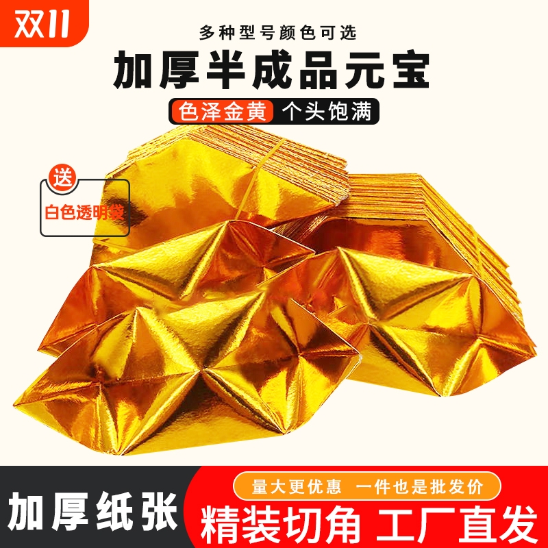 半成品纸切角元宝手工折纸免折叠大中小号送袋子1013型1000个