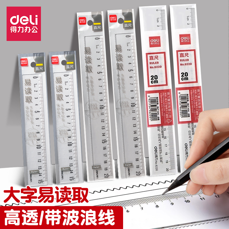 得力直尺15cm塑料20厘米透明尺子