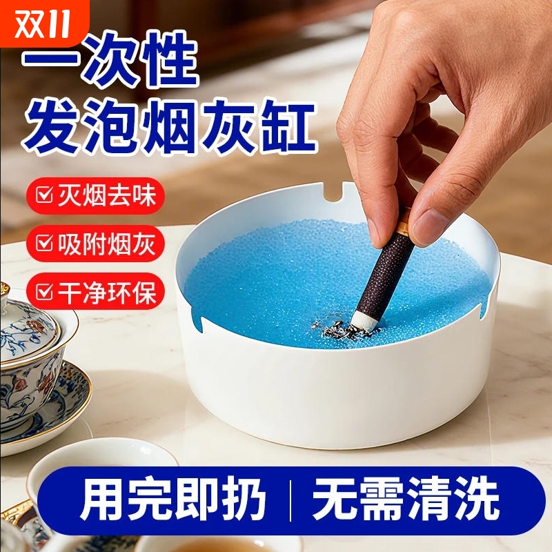 一次性烟灰缸自带灭烟沙加厚加硬吸附烟灰办公室家用去味免洗随身