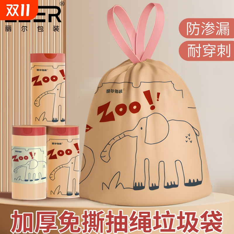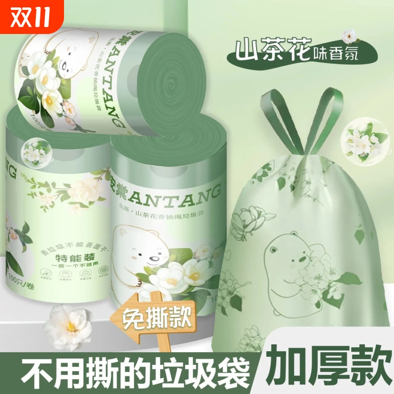 艾草垃圾袋家用加厚手提式防厨房免撕抽绳大号厨余祛味塑料袋结实