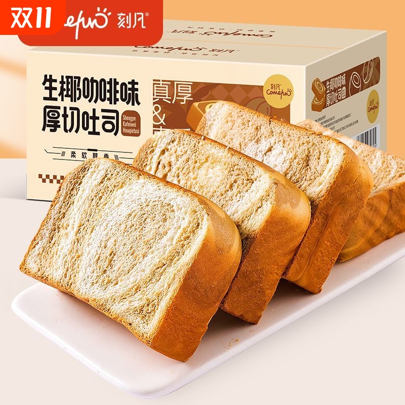 刻凡生椰吐司咖啡味厚切面包手撕切片早餐代餐饱腹宿舍零食品整箱