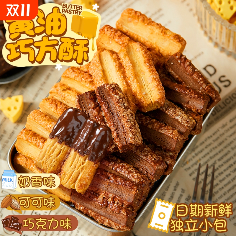 太酥了!黄油厚乳巧方酥可可巧克力味饼干千层酥糕点心休闲小零食