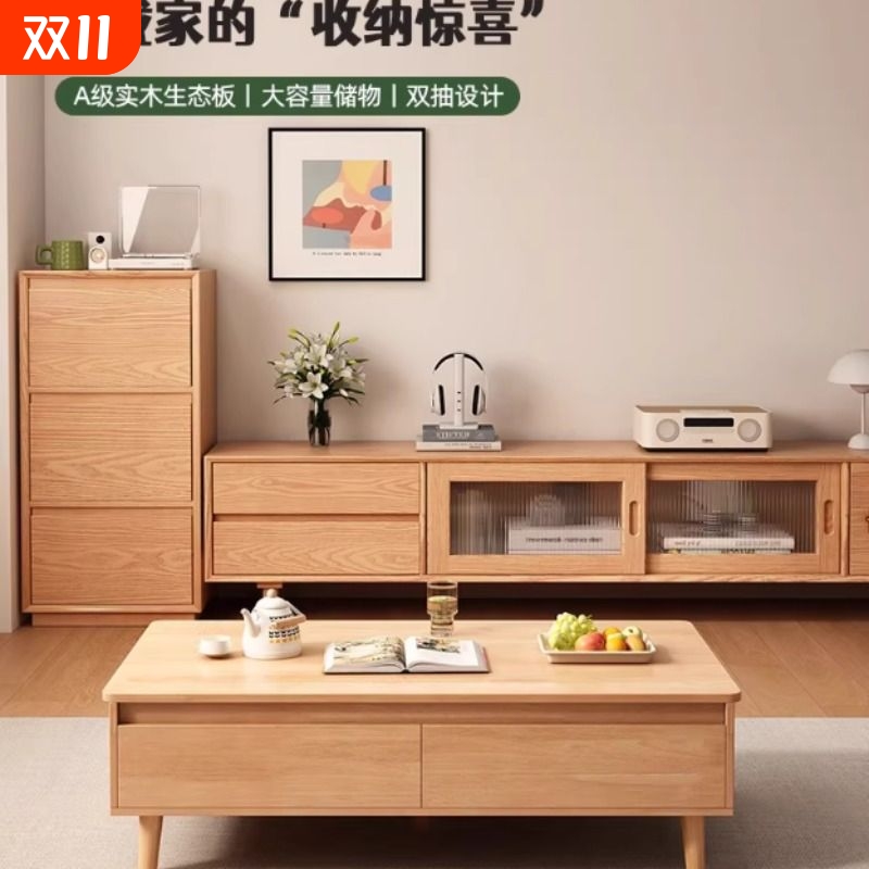 实木芯茶几客厅家用小户型沙发茶桌2025新款出租屋原木风方形桌子