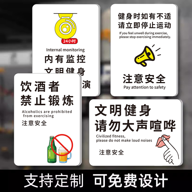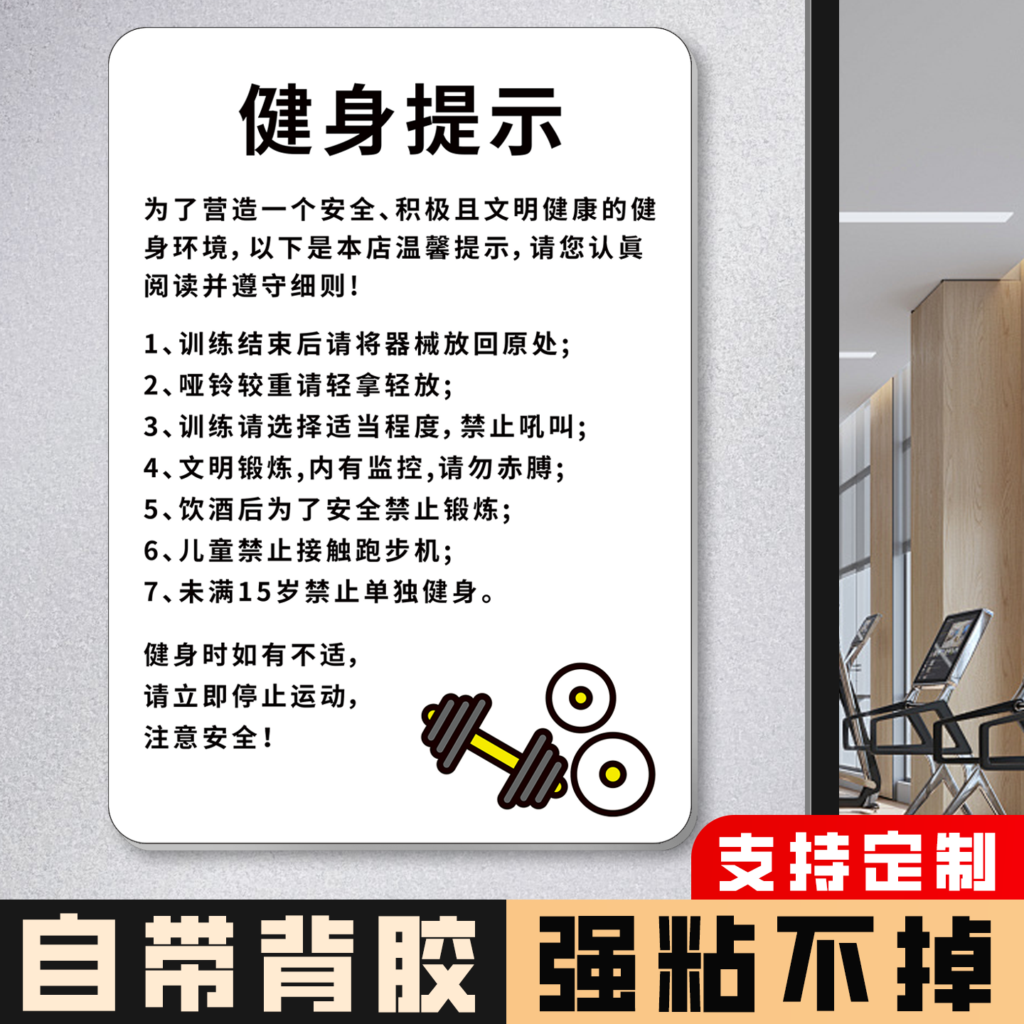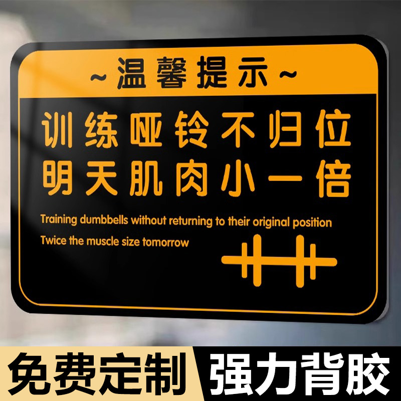 亚克力健身房标识牌提示牌标语训练哑铃器械使用后及时归位贴纸创意语