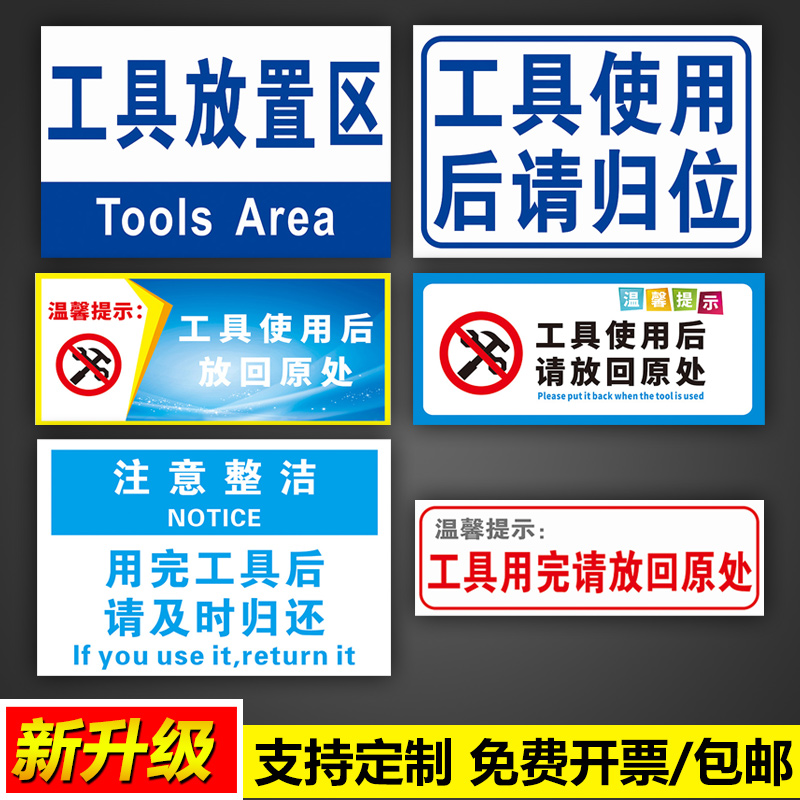 工具使用后请归位分区标识牌放置区温馨提示用完及时归还放回原处标示
