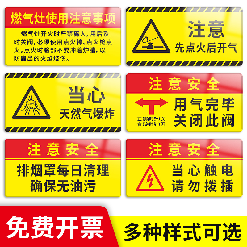 用完请及时关闭燃气煤气开关阀门防水防晒标志标识贴纸警示牌定制