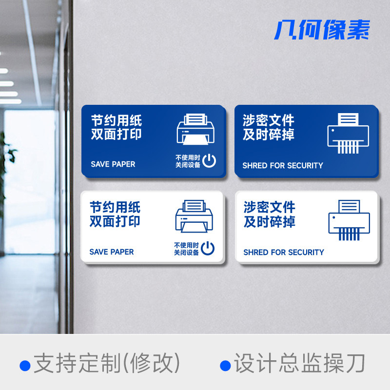 办公室打印机节约用纸双面打印温馨提示贴涉密文件及时碎掉标识牌