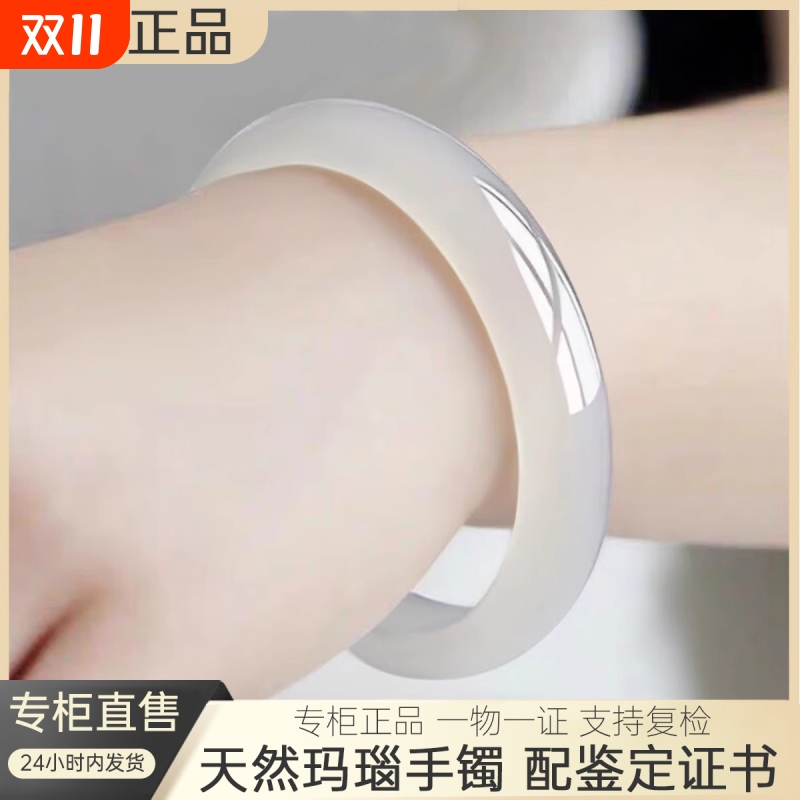 无染色天然玛瑙手镯女款白月光冰种玉髓荔枝冻马料原色玉手镯正品