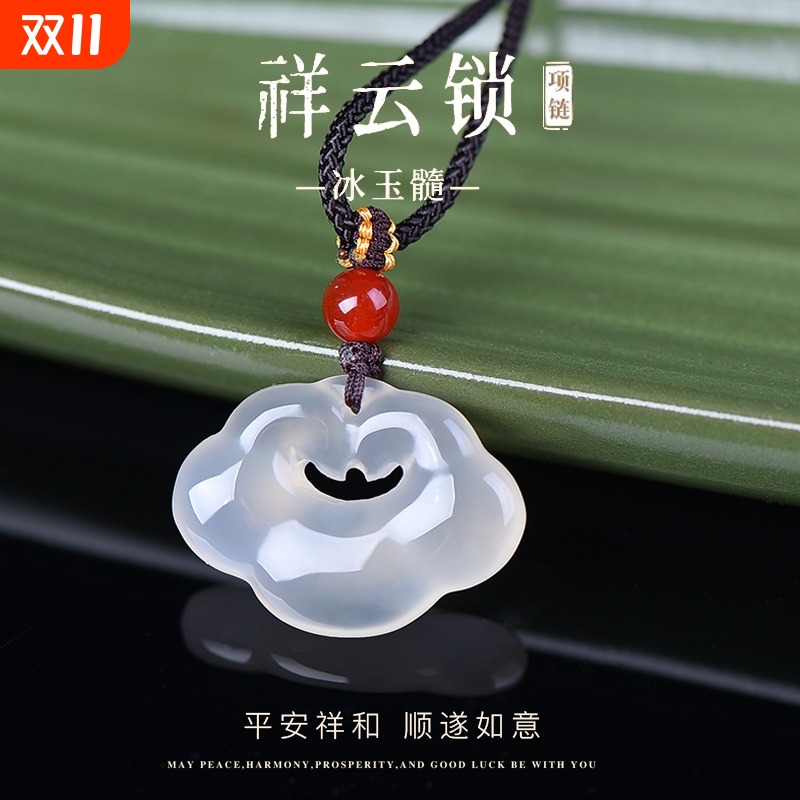 玉隐山平安锁玛瑙玉髓吊坠如意天然项链女款高冰祥云玉坠节日礼物