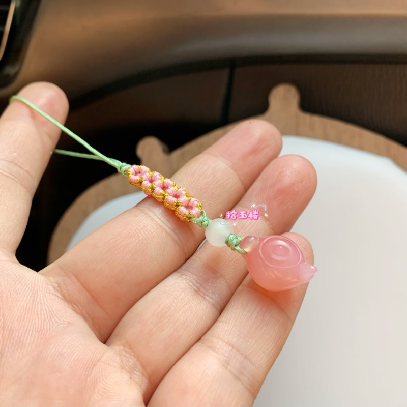 盐源玛瑙把把壶手机挂绳diy桃花结玉髓手机链钥匙扣配件挂饰编织