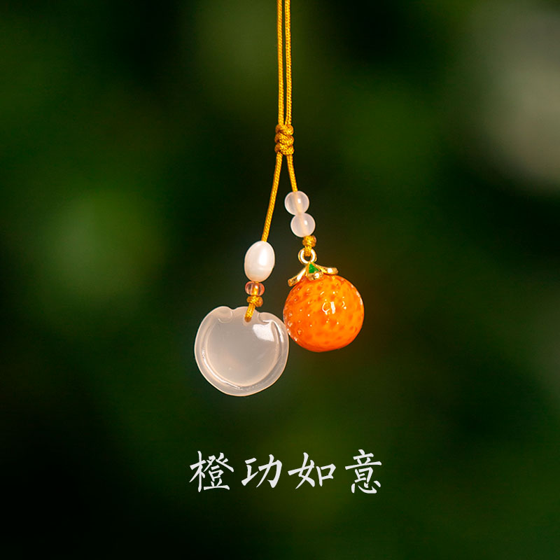 玉髓如意锁橙子手机挂件挂饰玉石吊坠小巧挂坠手机链男女u盘防丢