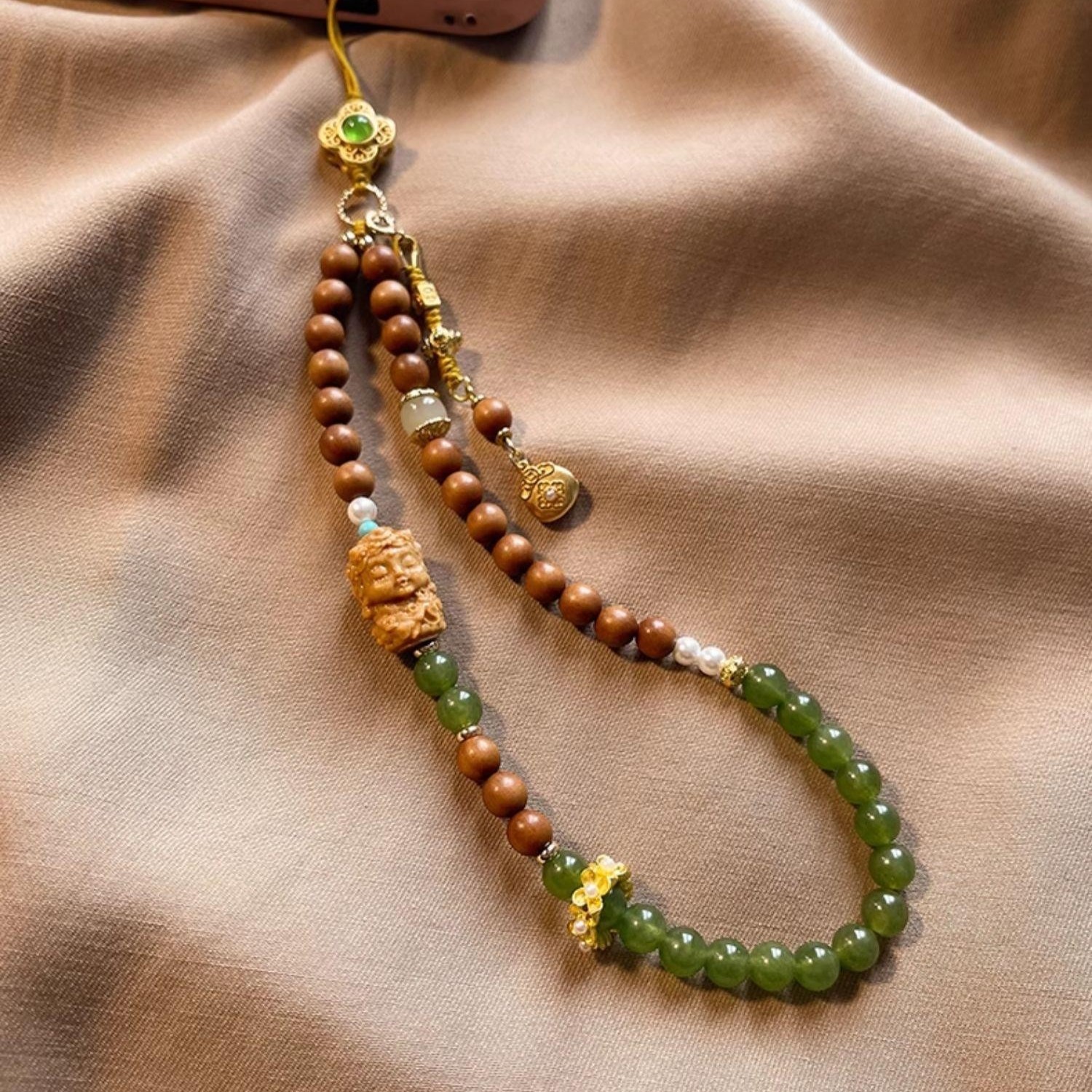 手机链玉髓檀香木手机挂件手腕款手机挂绳福袋防丢挂饰国风复古潮