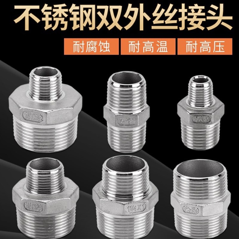 304不锈钢双外丝接头双公螺丝直接1/2分3分4分6分1寸变异径