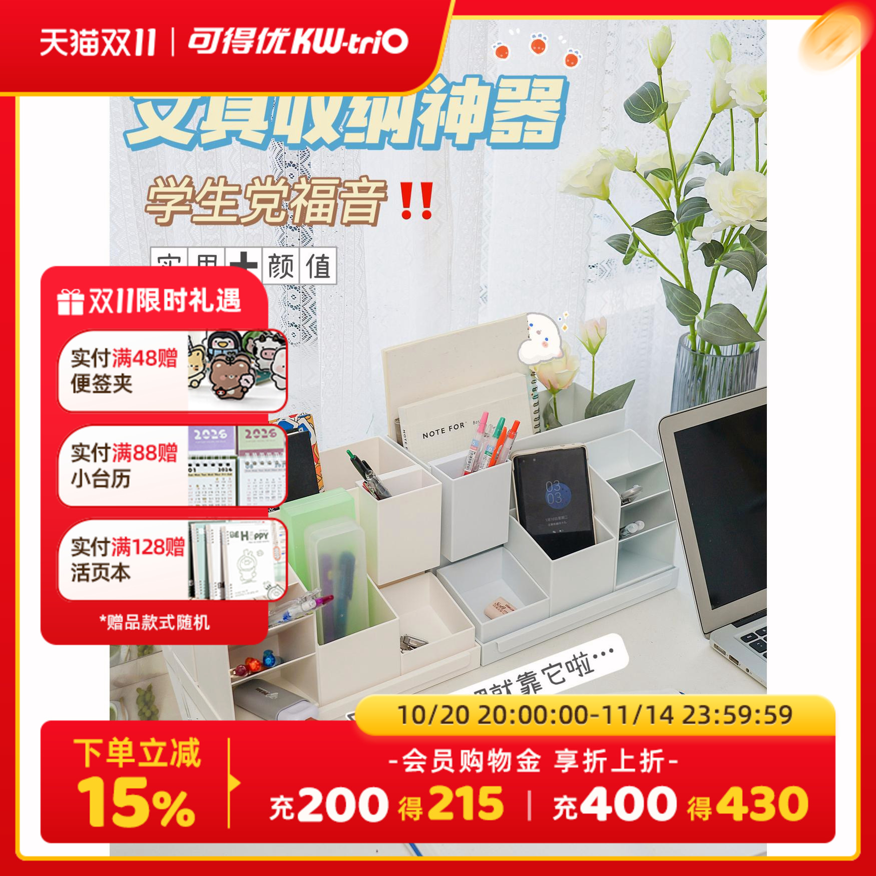 可叠加A4文件收纳盒办公桌收纳筐资料整理架桌面收纳架文具笔筒