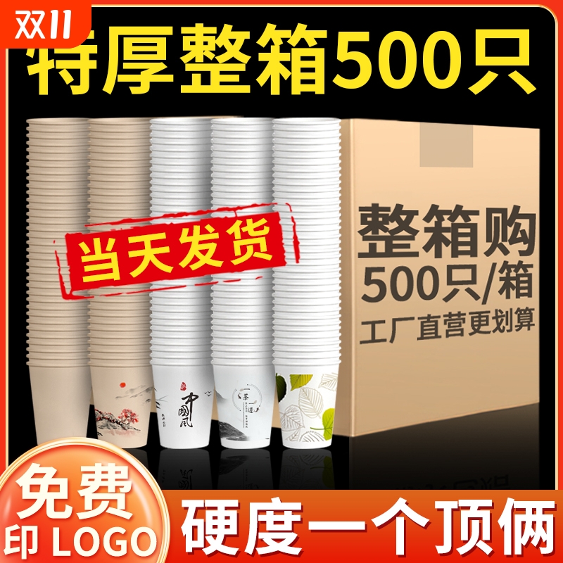 一次性纸杯50只杯子防烫茶水杯食品级加厚口杯家用商用餐饮用防漏