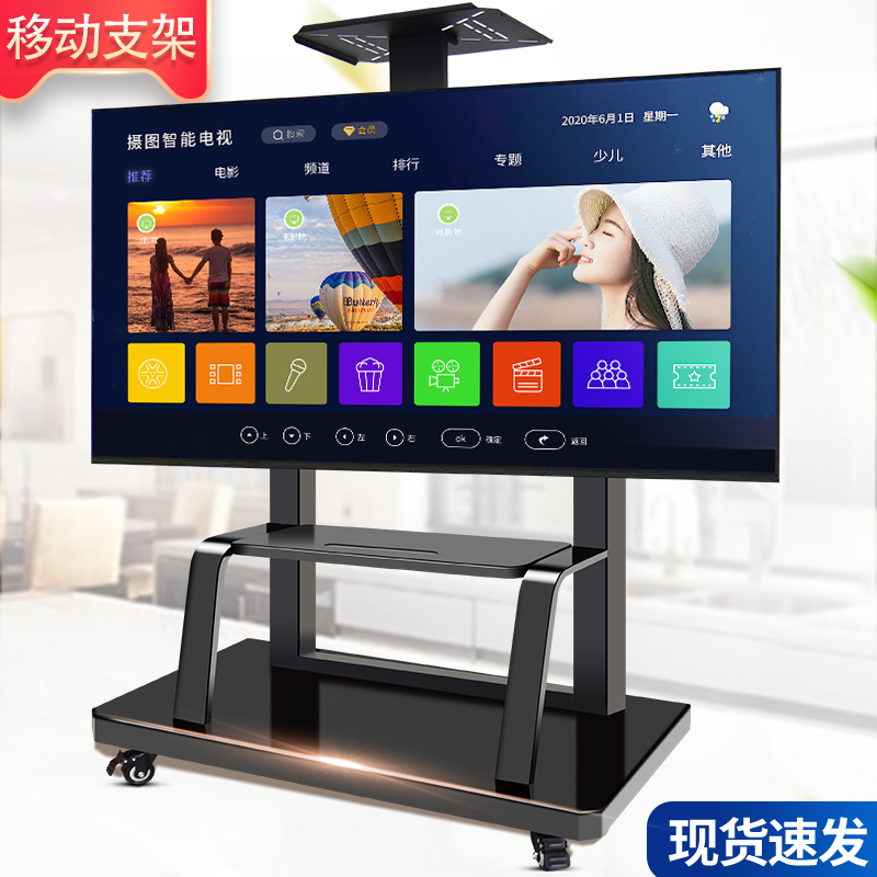 电视机落地支架直播广告机横竖屏旋转推车带轮可移动架子通用挂架