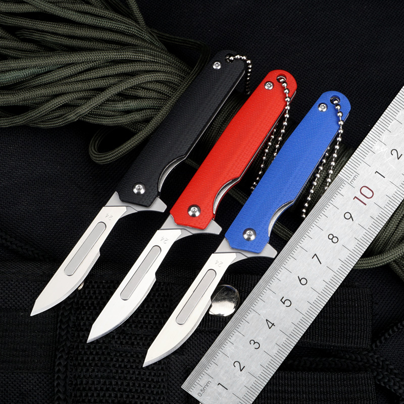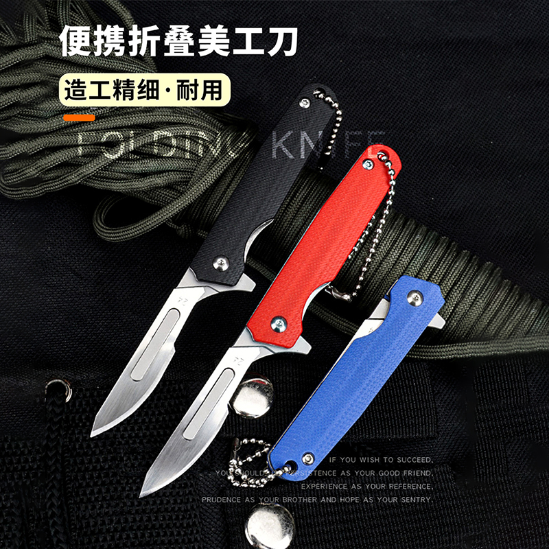 迷你专业手工美工刀可替换刀片开箱刀开箱神器G10柄带皮套折叠刀