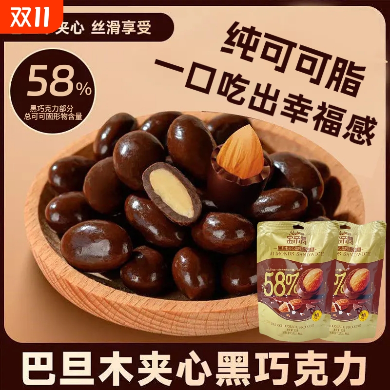 巴旦木夹心黑巧克力纯可可脂坚果巧克力休闲解馋零食小吃独立包装