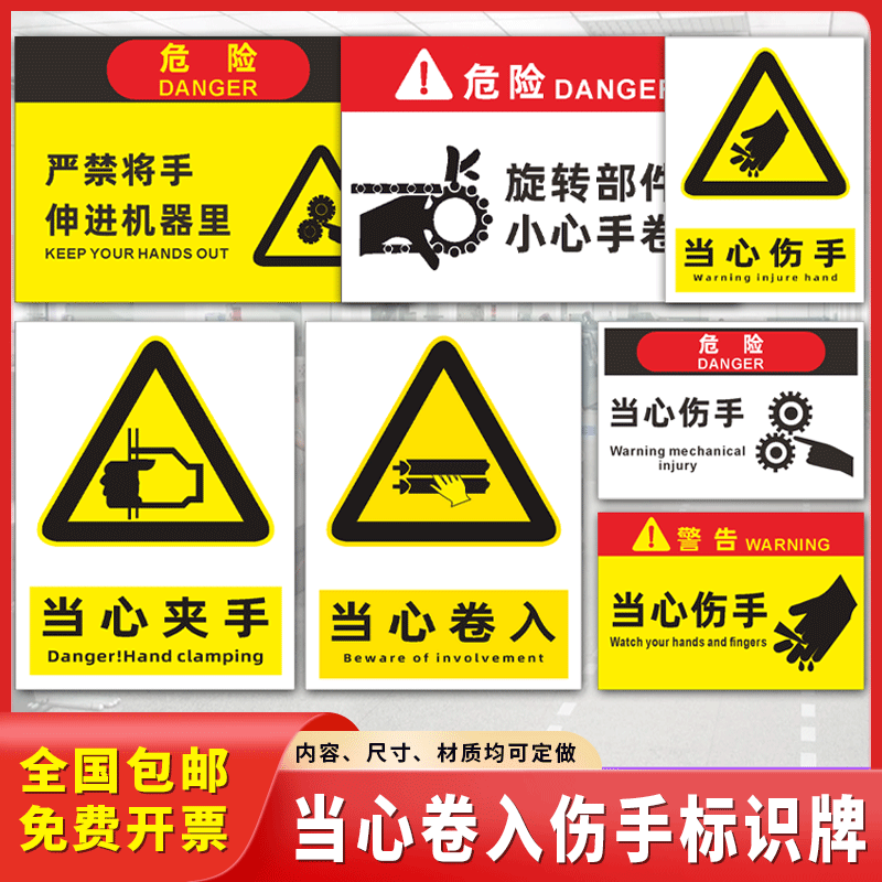 当心卷入伤手标识牌机械操作