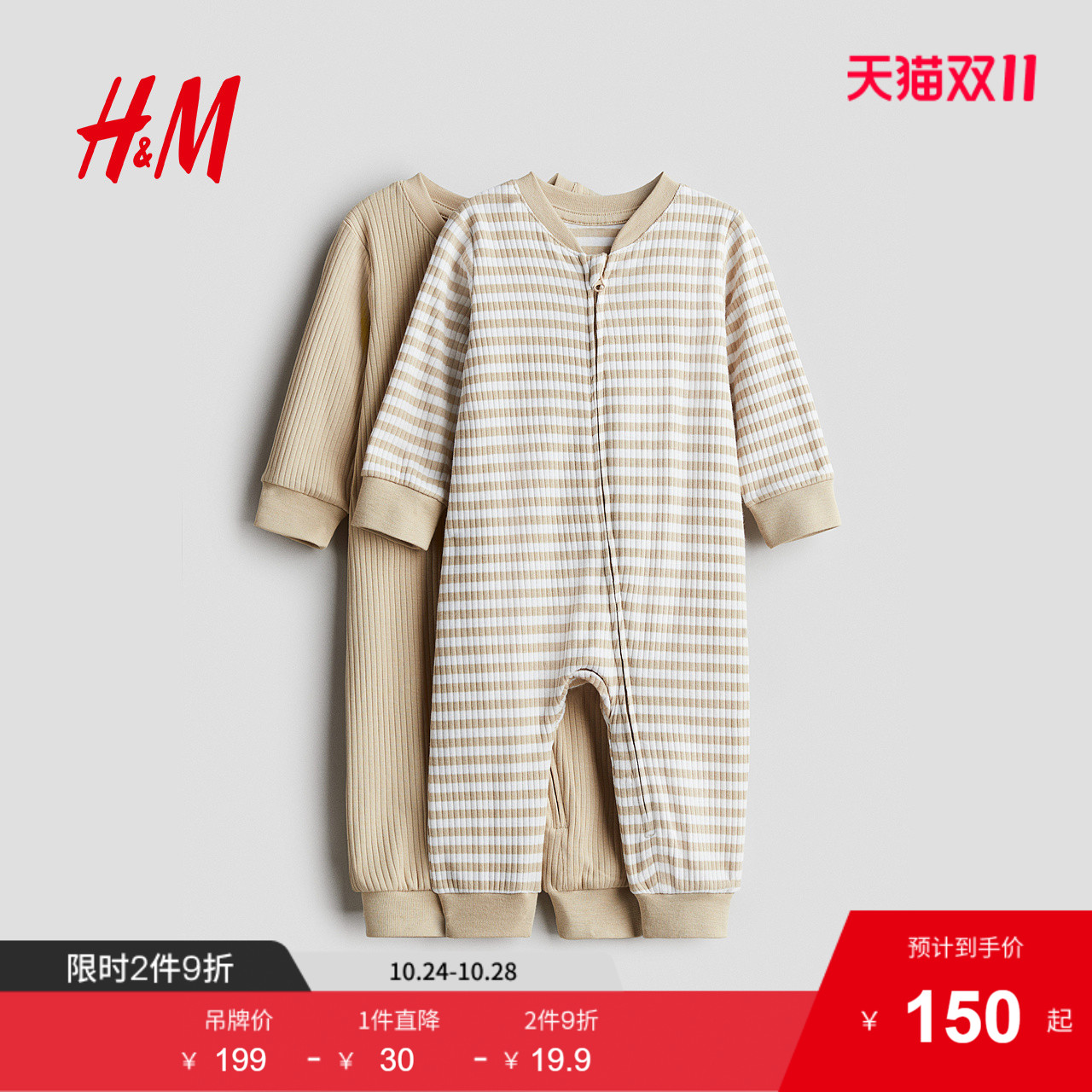 HM童装女婴家居服连体衣2件装早秋季舒适棉质印花连体睡衣1085