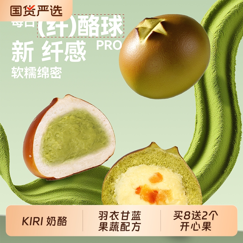 每日纤酪新品碱法原麦羽衣甘蓝橙皮健康饱腹奶酪球碱水面包早代餐