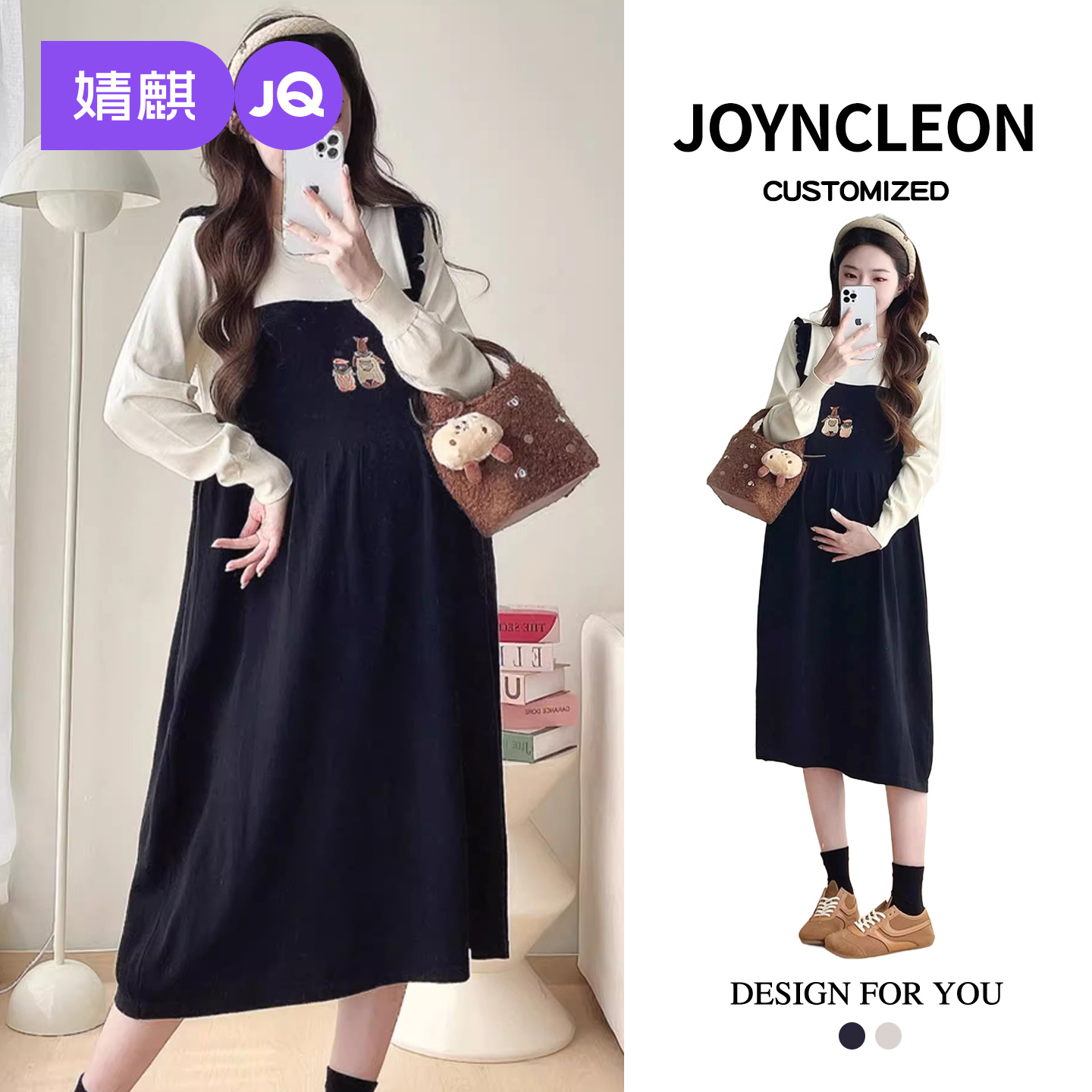 婧麒孕妇装2025新款早秋款时尚洋气减龄宽松显瘦假两件刺绣连衣裙