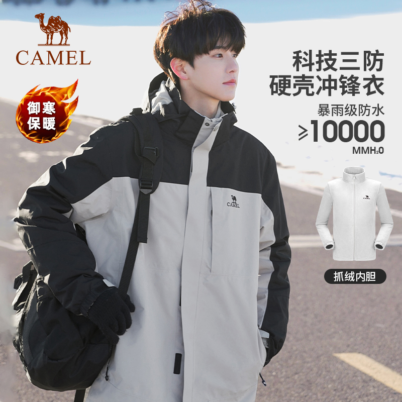 骆驼户外北风三合一冲锋衣男女抓绒可拆卸防风防水外套旅游登山服
