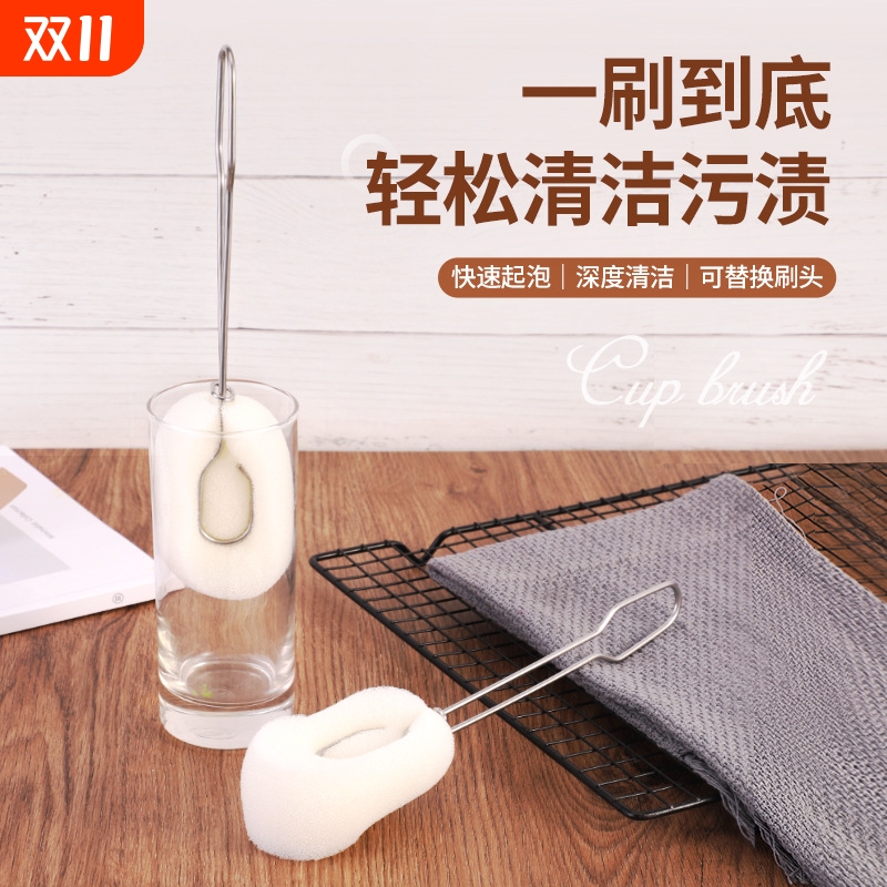 厨房杯刷不锈钢杯刷子长柄可拆卸可替换头洗杯子洗碗刷清洁奶瓶刷
