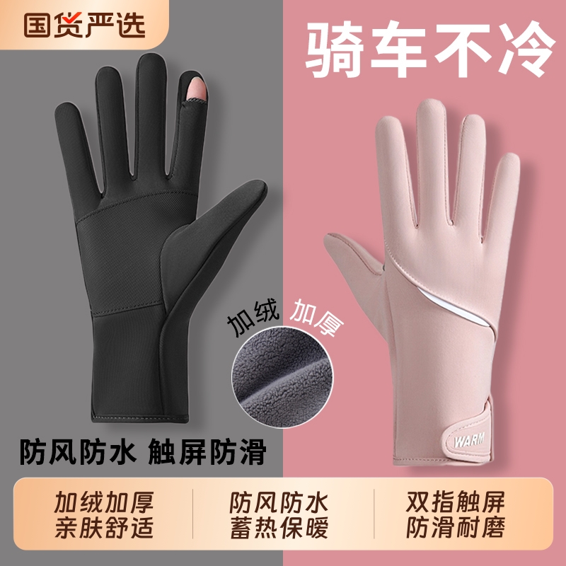 秋冬新款手套女秋冬季可触屏保暖防水骑行骑车防风防滑加绒电动车