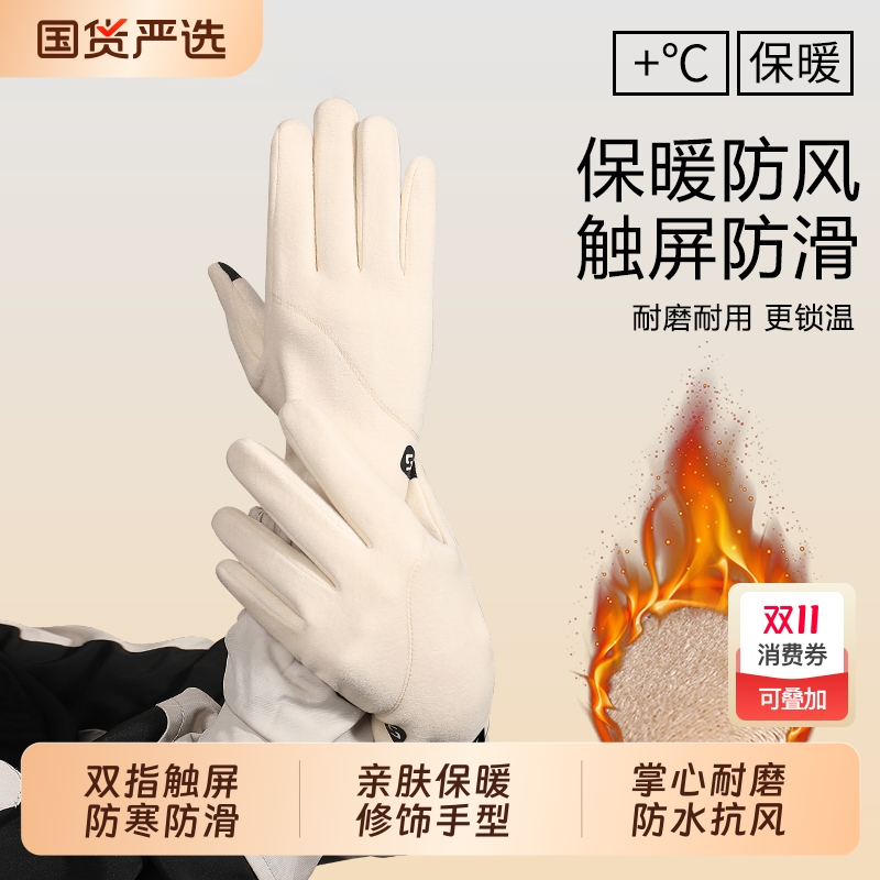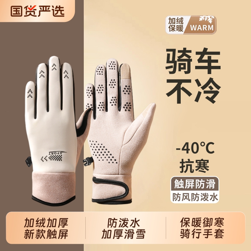 手套女冬天2025新款骑行保暖防寒加绒加厚女士羊绒冬季可触屏手套