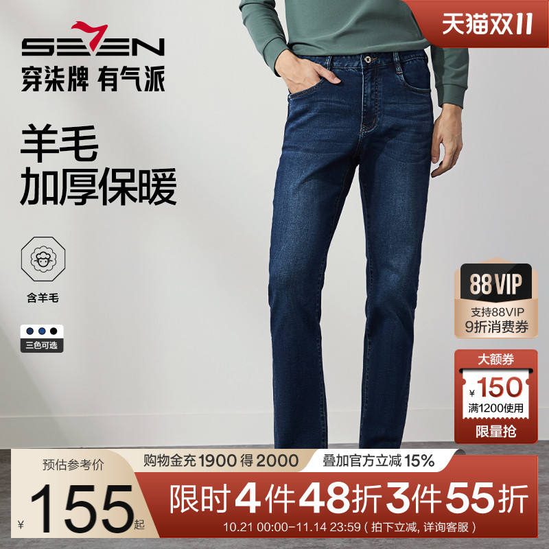 【含羊毛】柒牌水洗牛仔裤男秋冬新款时尚休闲百搭直筒长裤子
