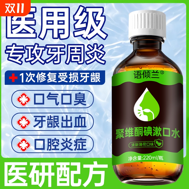 聚维酮碘伏漱口水含漱液杀菌除口臭消炎牙周炎持久留香医用护口腔